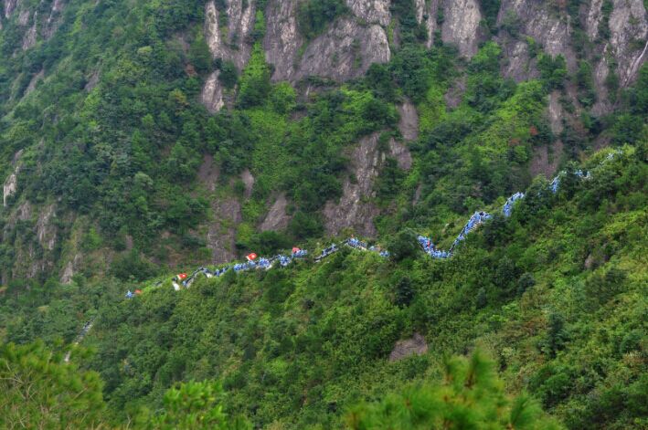 在整個(gè)行軍過程中,最有挑戰(zhàn)的路段莫過于三十六彎了,有些地方臺(tái)階的陡峭度甚至達(dá)到了六七十度,每跨上去一級(jí),大腿就會(huì)又酸又疼,在互相鼓勵(lì)下,天信隊(duì)員們不放棄不拋棄,一步步堅(jiān)持到底,終于站在了最高峰俯視群山,當(dāng)美景盡收眼底的那一刻,大家紛紛拿出手機(jī)記錄下這個(gè)難忘的旅程,并在微信、微博搶發(fā),一瞬間朋友圈被紅色正能量刷得滿滿的!