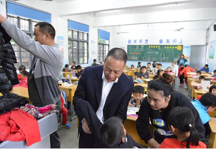 2015年11月4日中午,一場秋雨迎來了初冬的寒冷,但望里北岙小學校園內一片歡聲笑語,因為天信儀表集團和民健社的愛心志愿者來到了這里,為在這里上學的百余名外地民工孩子送上了一份愛心禮物。
