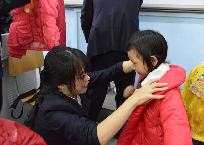 為了能讓每個孩子都能擁有禮物,愛心志愿者們讓孩子們排好隊,精心幫孩子們挑選適合的衣服。天信儀表集團黨委副書記鄭成平找到一件紅色羽絨服,在排在最前面的小女孩身上比試了一下:這件衣服很漂亮,我來幫你穿。小女孩乖巧的配合,并用稚嫩的童聲說了聲謝謝叔叔,穿好后一路蹦蹦跳跳的回到了自己位置上。志愿者陳書球是位20多歲的小伙子,還未婚,這是他第一次給小孩子穿衣服,難免有點笨手笨腳,但是穿得特別細心。志愿者黃君長相甜美,受到了孩子的喜愛,當她拿起一件外套這件衣服有沒有哪位同學想試穿下?孩子們馬上爭相恐后地舉手:我要!我要??!我也要穿!。看著孩子們臉上一個個洋溢著開心的笑容,愛心志愿者也發自心底的感到快樂和開心。