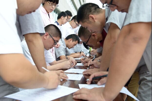7月24日上午9點,兩輛獻血車準時到達,天信志愿者服務隊也在公司大廳門口設置了愛心獻血填表處,為前來獻血的員工提供接待、咨詢等服務。雖然臺風麥德姆剛過,外面仍然風雨交加,但這依然澆不滅大家獻血的熱情,不久報名處和采血車上都聚集了很多人,并排起了長龍,有的自己獻完之后還發短信叫上同事,發動其它同事一起參與這次獻愛心活動。人潮涌動,愛心匯聚,現場非常讓人感動。
