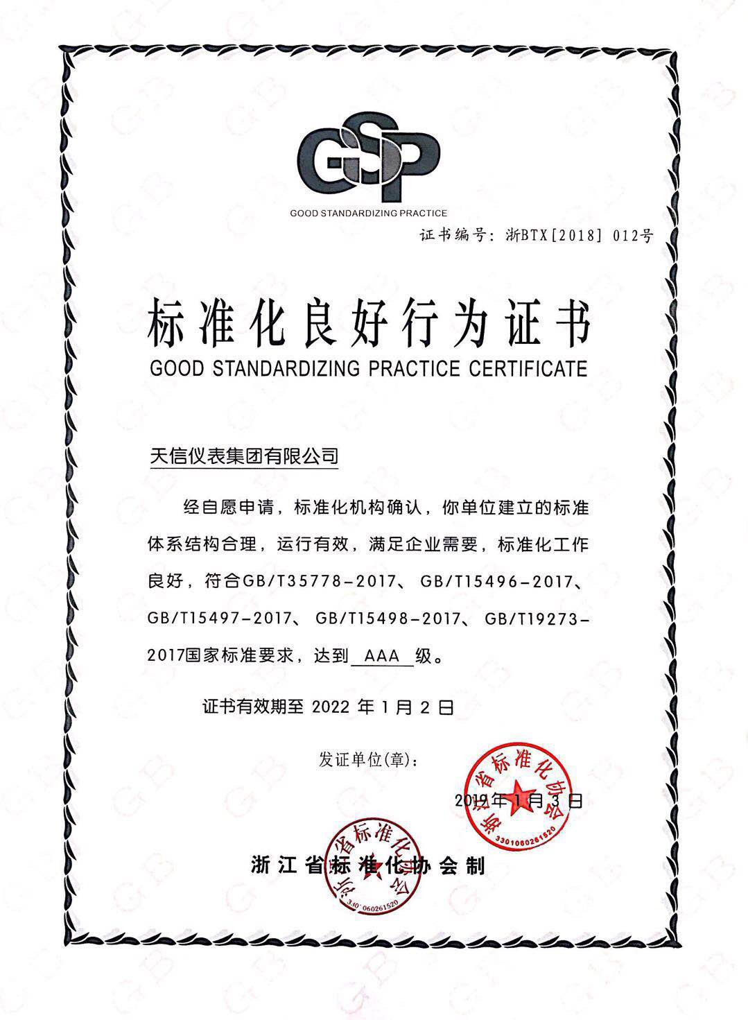 • Good Conduct in Standardization Certificate