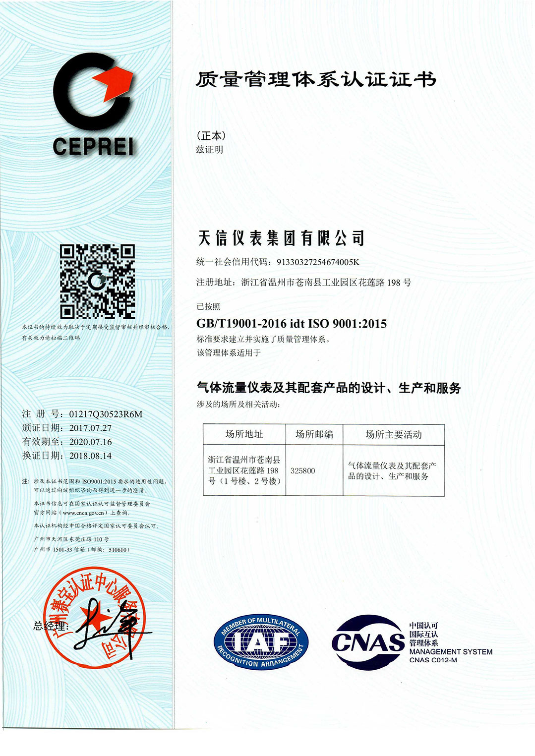 • Quality Management System Certificate